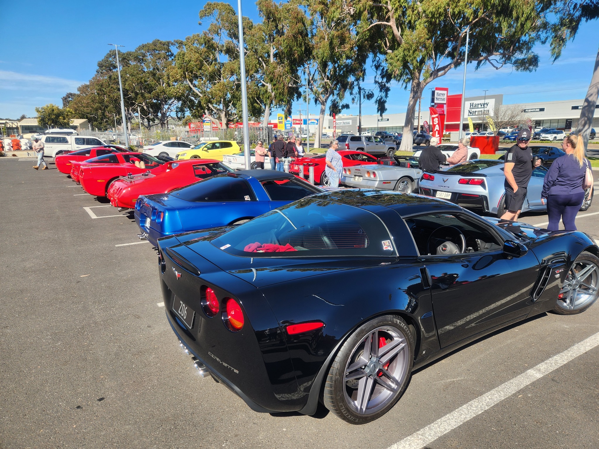 21 Corvettes lined up this morning for the Graham Johns Memorial run from Repco Marion to The Bridge Hotel Langhorne Creek via Mt Compass.