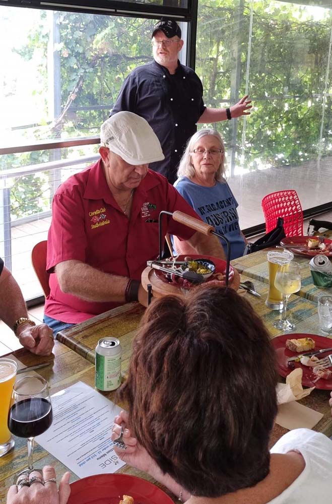 Well done to everyone! Got the group together, we talked about our planed route to the Uppside restaurant. l asked everyone to make their way back to their cars ready to head along the freeway until the turn off onto Horrocks Hwy. Here we waited to pick up Gary & Pam, but no Goof & Mel. l was hoping they had received my text the day before. On approaching Roseworthy, l spotted Goof’s C4. All members now accounted for, so on we go with the weather on our side, winding our way towards Clare Valley. I liked doing this run as it was so simple to organise and had only one set of traffic lights to contend with. In no time at all, we were pulling into the carpark at Uppside restaurant. Parking was easy and we headed up to the restaurant for lunch. Our hosts & owners were Chris & Kate. With Kate at the bar & Chris the kitchen l explained the payment setup to everyone, then it’s off to the bar for drinks.