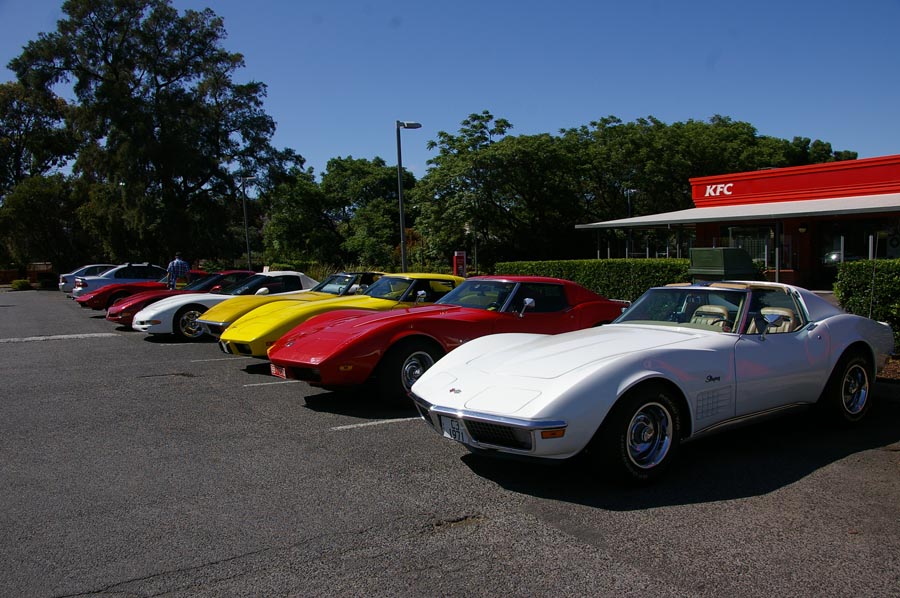 9 Corvettes rumbled up Greenhill Rd and into the hills. This part of Greenhill Rd is popular with cyclists so as responsible motorists we all ensured we gave them the 1.5m gap when passing as required by law. I'd hate to have one run into me. Fibreglass is difficult to fix.